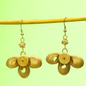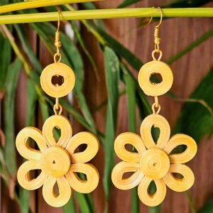 Handwoven Bamboo Flower Drop Earrings – Natural Elegance